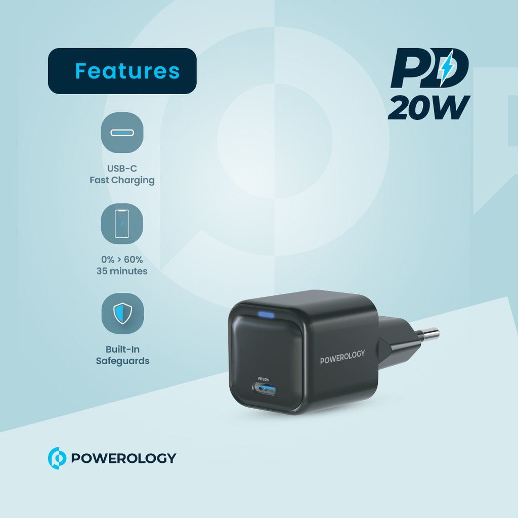 Powerology Ultra-Compact GaN Charger PD 20W EU - Black