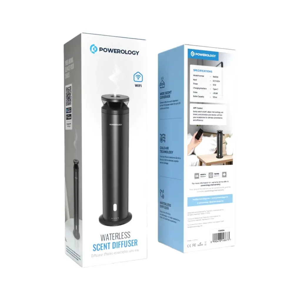 دستگاه خوشبو كننده محيط پاورولوژی از طریق WiFi و اپلیکیشن موبایل قابل کنترل است. کاربران می‌توانند زمان‌بندی پخش، شدت رایحه و حالت‌های محیطی را به آسانی تنظیم کنند.
