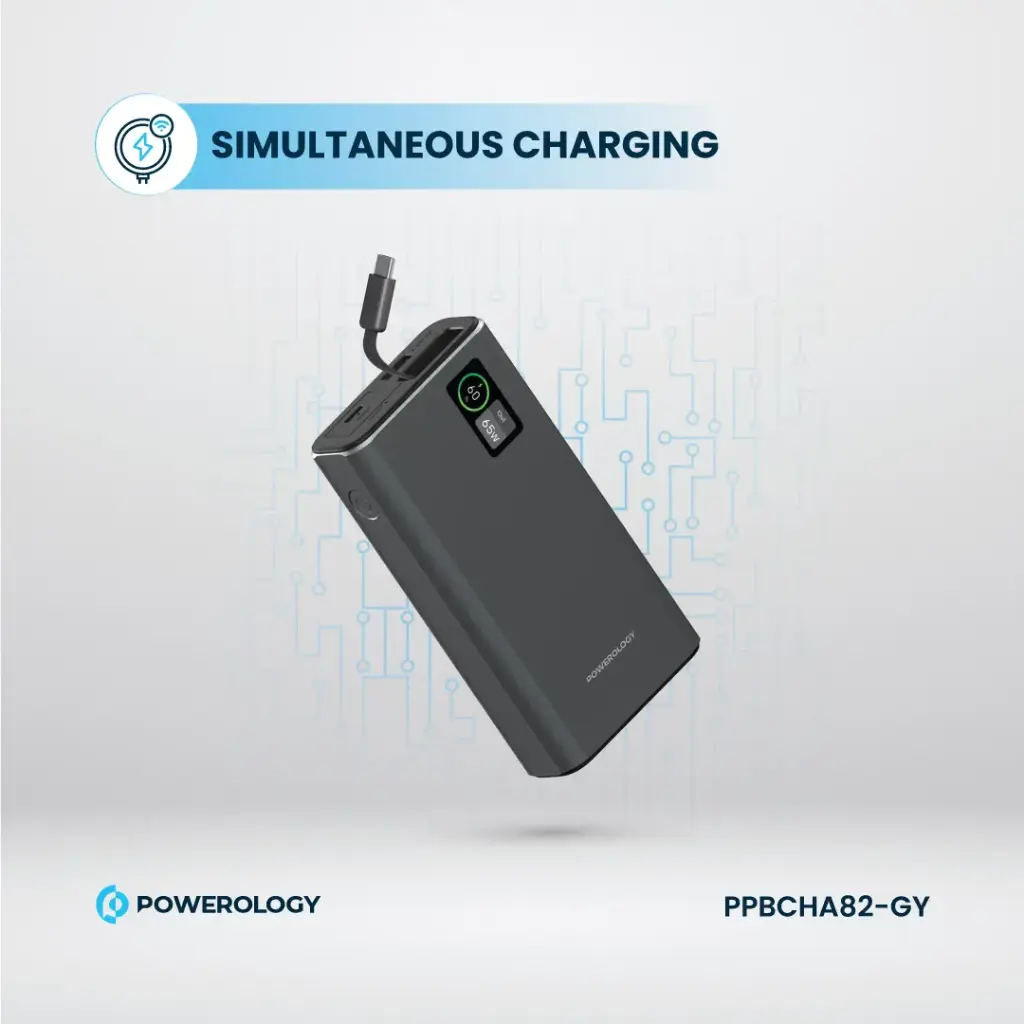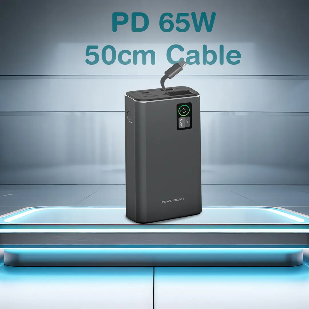 یکی از برجسته‌ترین نقاط قوت این پاوربانک، پشتیبانی از Power Delivery 65 وات در پورت USB-C (ورودی و خروجی) است که شارژ لپ‌تاپ‌های مدرن (مانند مک‌بوک یا سرفیس) را بدون کاهش سرعت ممکن می‌سازد. شارژ خود پاوربانک نیز فوق‌العاده سریع است: در تنها 35 دقیقه به 65% می‌رسد، که برای کاربرانی که زمان کمی دارند، نجات‌دهنده است. خروجی USB-A با توان 30 وات، شارژ سریع برای گوشی‌ها و تبلت‌های قدیمی‌تر را فراهم می‌کند، در حالی که ولتاژ انعطاف‌پذیر در هر دو پورت (USB-C و USB-A)، سازگاری گسترده با دستگاه‌های مختلف را تضمین می‌کند – از اندرویدها و iOS گرفته تا لوازم جانبی USB. قابلیت شارژ همزمان سه دستگاه (از طریق پورت‌های مختلف و کابل ثابت)، آن را به ابزاری همه‌کاره برای سفرهای گروهی یا روزهای شلوغ تبدیل می‌کند؛ مثلاً گوشی‌تان را با USB-C شارژ کنید، ایرپاد را با USB-A و تبلت را با کابل داخلی متصل نمایید.